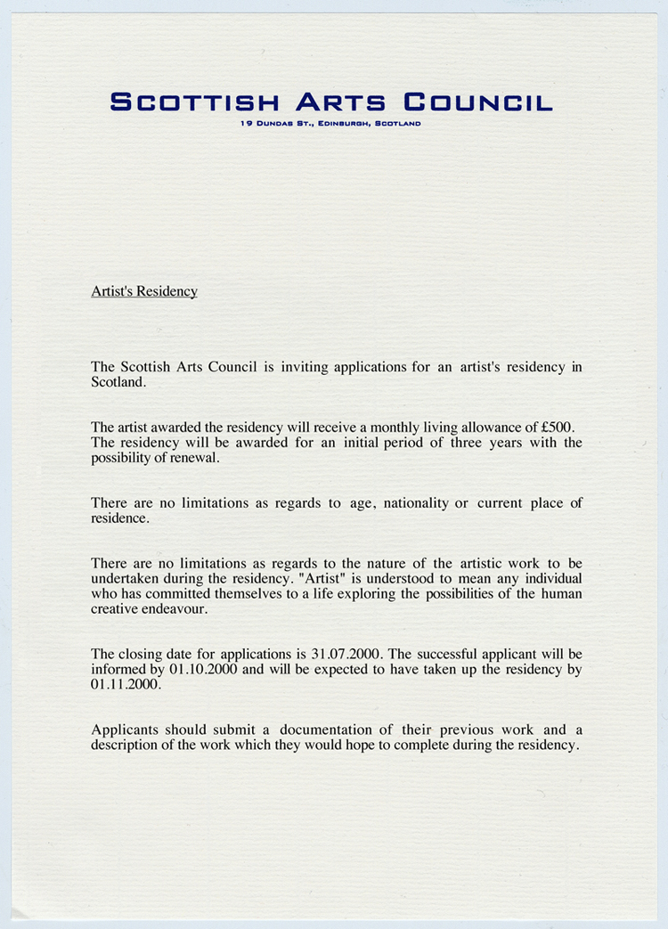 Bewerbung für ein Aufenthaltsstipendium für Künstler in Schottland