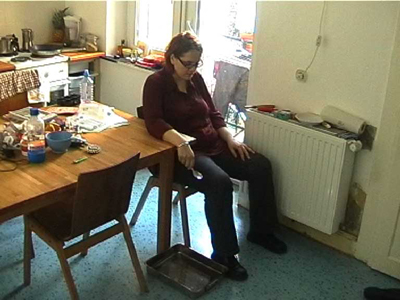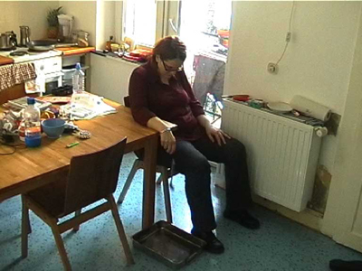 Das Video zeigt, wie ich versuche im Sitzen einzuschlafen. In meiner Hand halte ich einen Löffel, unter dem auf dem Fußboden ein Backblech liegt. Als ich nach ungefähr zehn Minuten einschlafe, fällt den Löffel aus meiner Hand. Der Lärm, mit dem der Löffel auf das Backblech trifft, läßt mich wieder aufschrecken. Es wird behauptet, daß Oscar Wilde diese Methode benutzte, um ein Nickerchen zu machen.